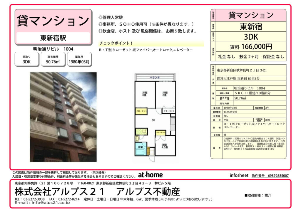交通 | 都営大江戸線東新宿駅 徒歩2分 東京メトロ副都心線東新宿駅 徒歩4分 |