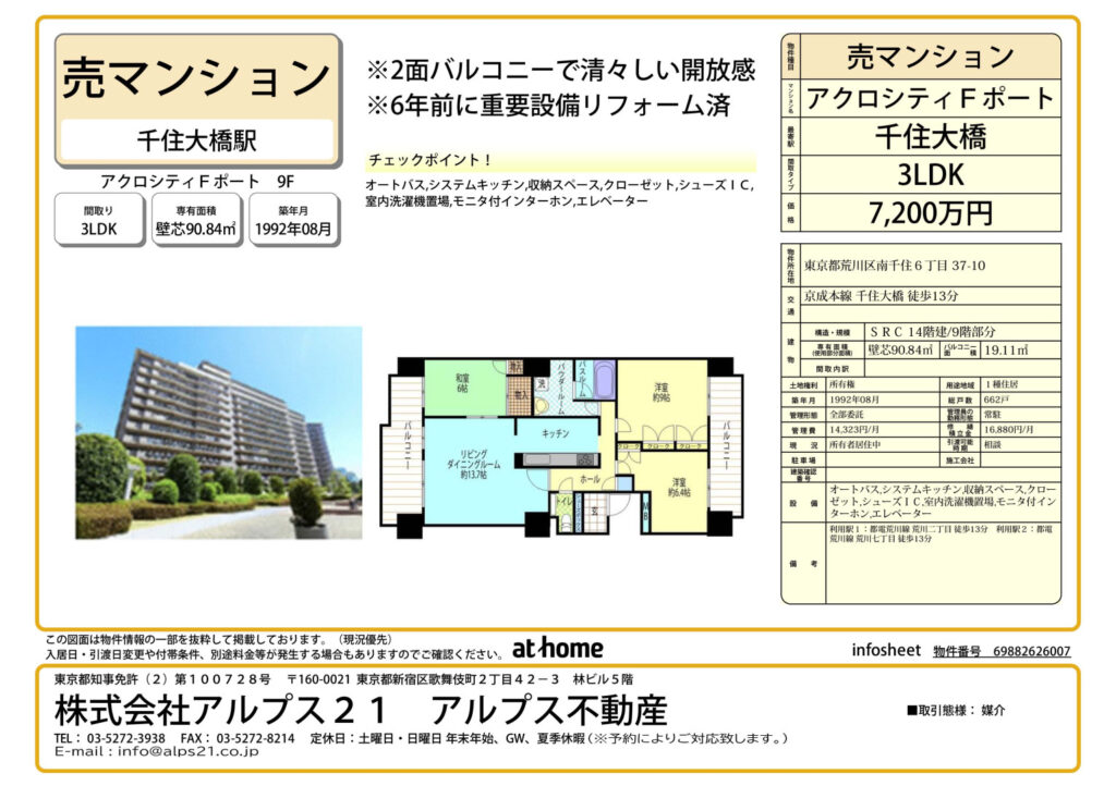 | 交通 | 京成本線千住大橋駅 徒歩13分 都電荒川線荒川二丁目駅 徒歩13分 |
