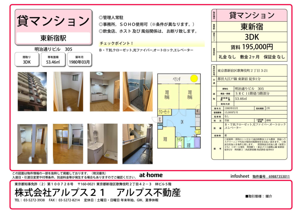 | 交通 | 東京メトロ副都心線東新宿駅 徒歩2分 都営大江戸線東新宿駅 徒歩1分 |