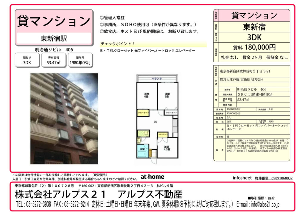 | 交通 | 都営大江戸線東新宿駅 徒歩2分 東京メトロ副都心線東新宿駅 徒歩4分 |
