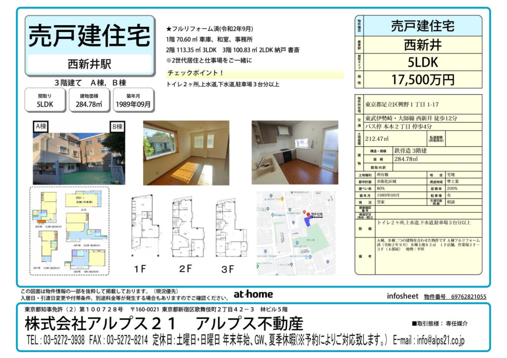 | 所在地 | 東京都足立区興野1丁⽬ 1-17 売⼾建住宅 |